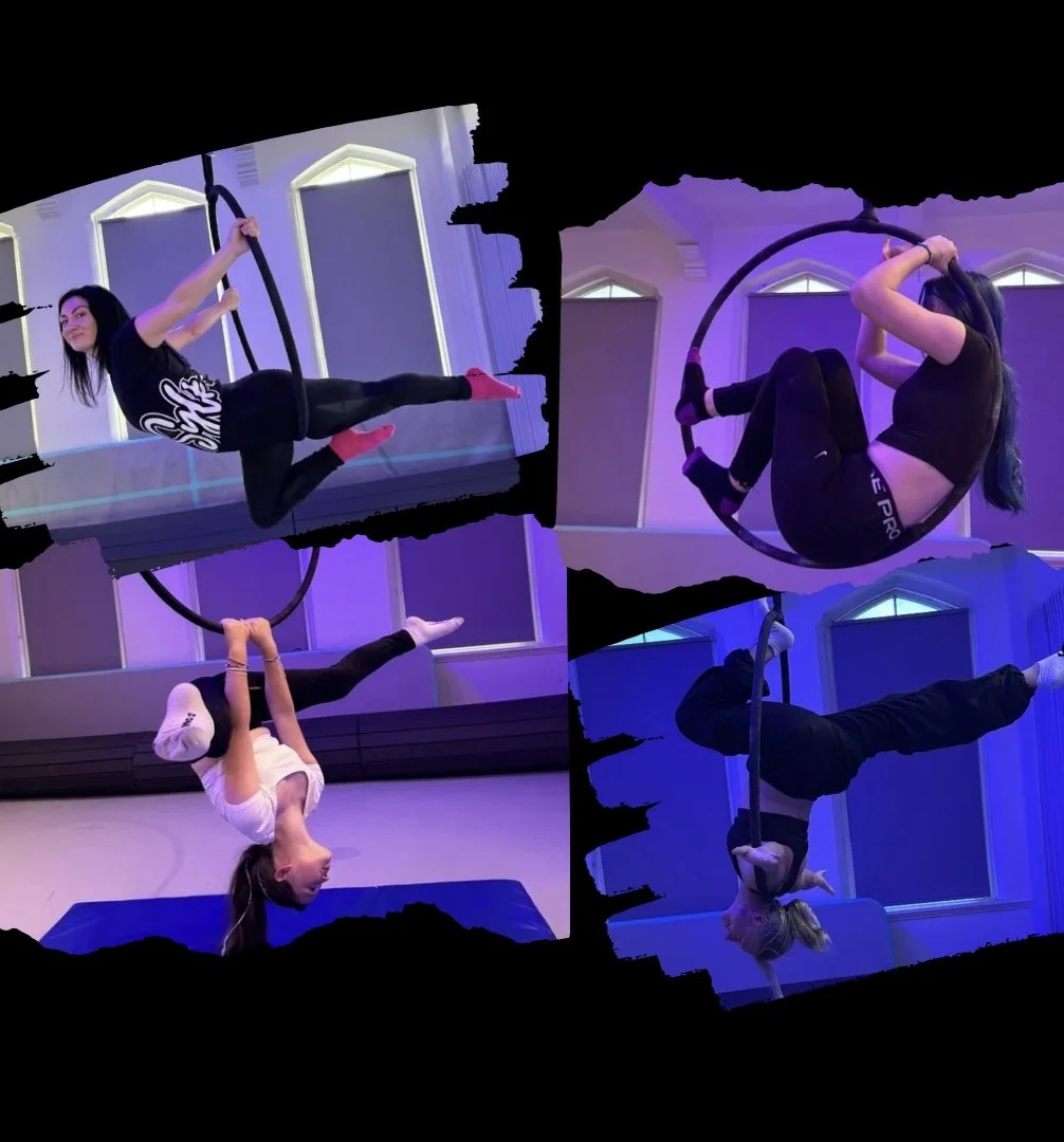 At Aerial Arts Macclesfield we provide an inclusive and supportive space where everyone is welcome. We specialise in aerial fitness and aerial dance currently offering classes centred around aerial hoop, which is a fun way to build strength, flexibility and confidence.